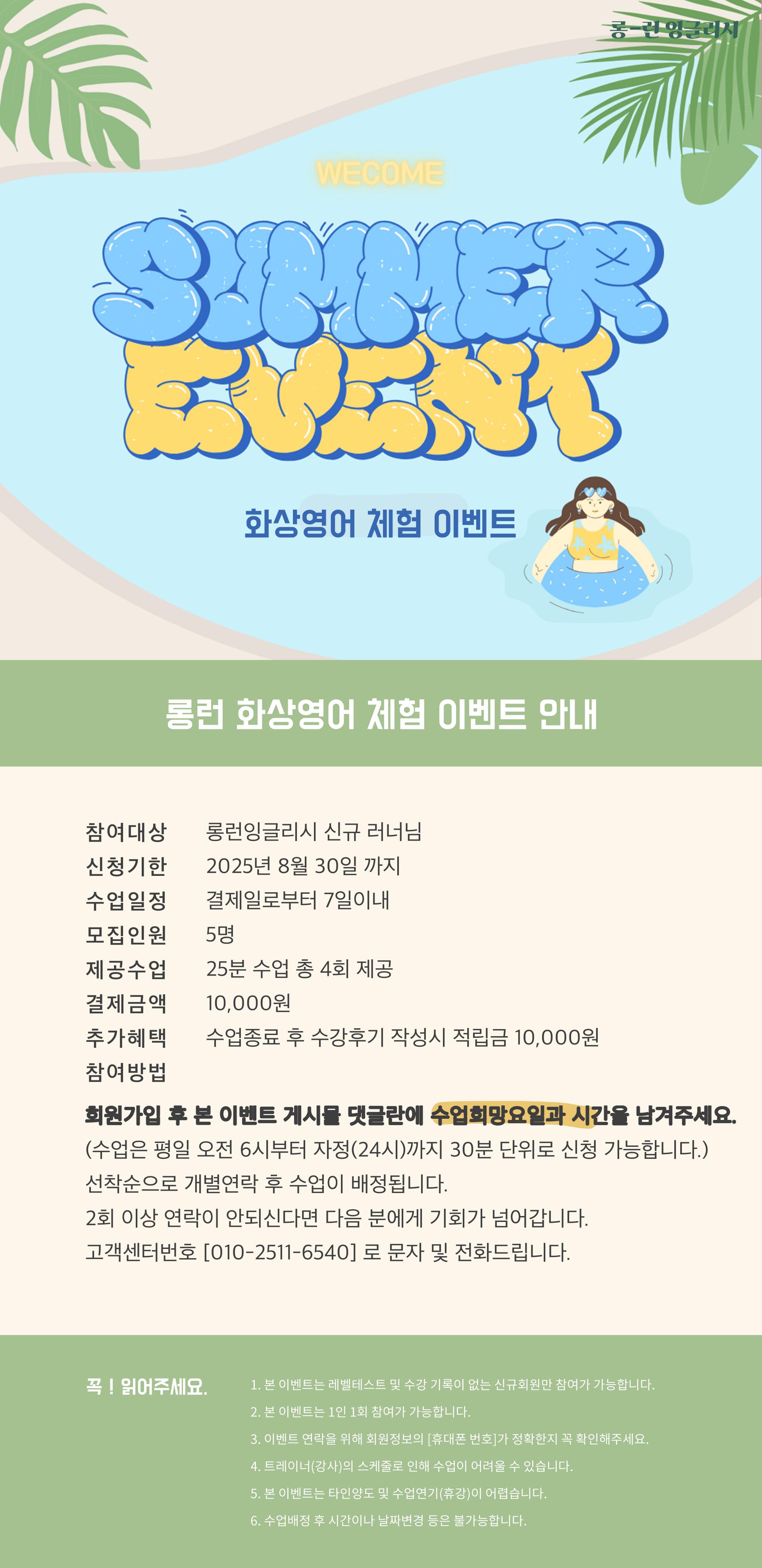 1. 본 이벤트는 레벨테스트 및 수강 기록이 없는 신규회원만 참여가 가능합니다.