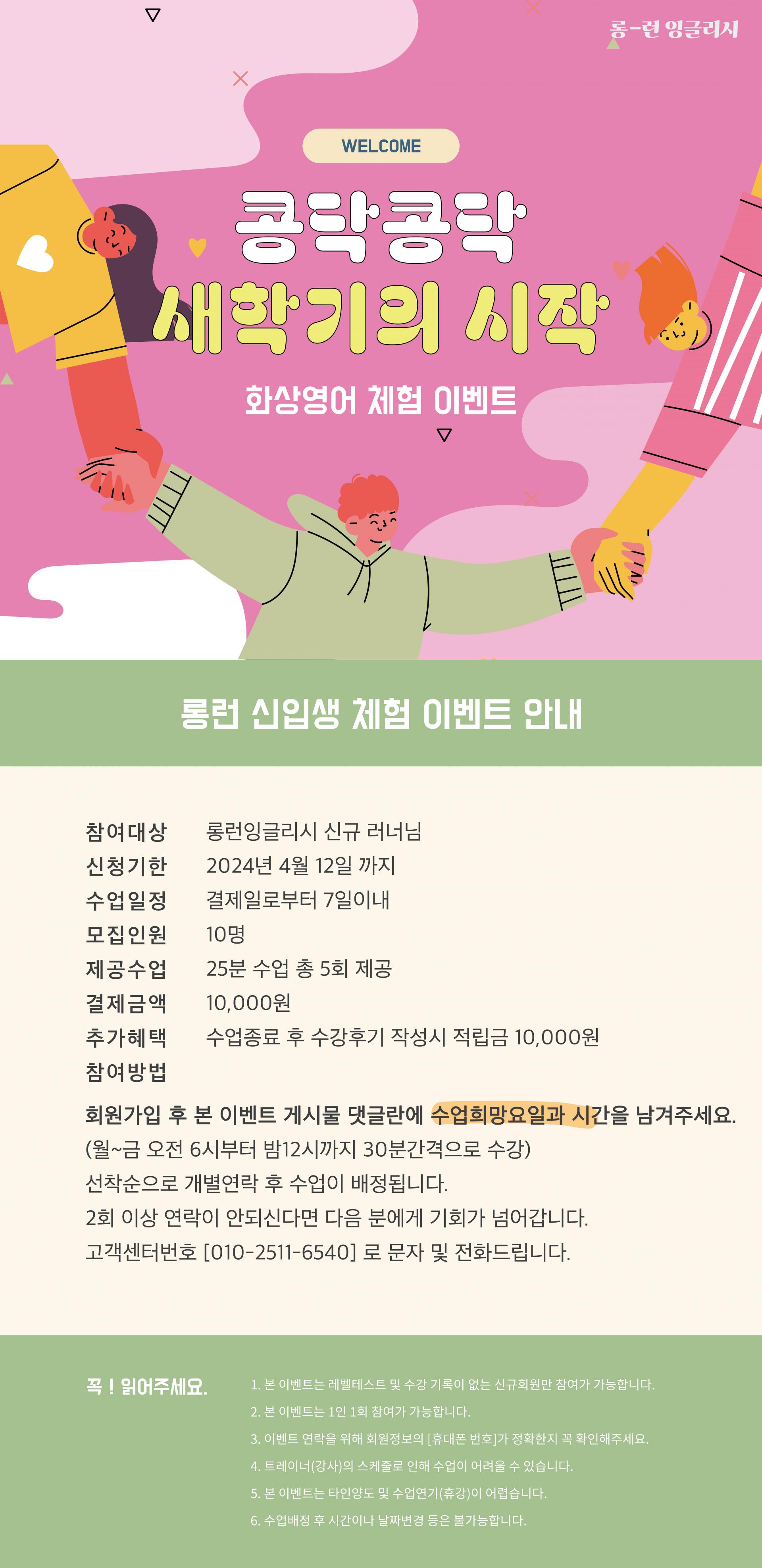 1. 본 이벤트는 레벨테스트 및 수강 기록이 없는 신규회원만 참여가 가능합니다.
